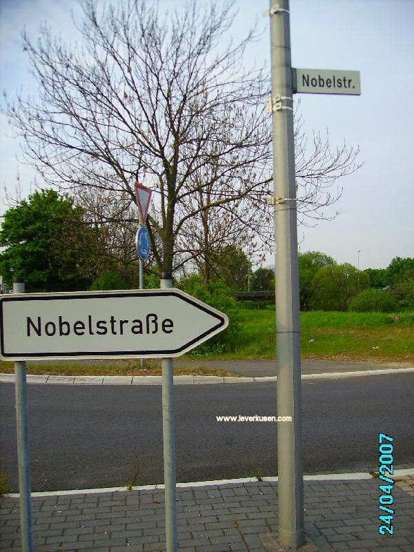 Zuerst erwähnt 1903 erhielt die Straße ihren Namen. 1938 als Alfred-Rosenberg-Straße erwähnt. Nach dem dem Ende des Dritten Reiches in Nobelstraße umbenannt. Die Verlängerung der Nobelstr. an den Westring wurde zwischen 1996 und 2001 errichtet.