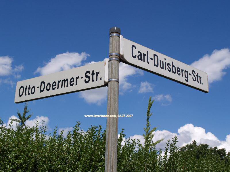 Otto-Doermer-Str. Zuerst erwähnt 1911 im Wahlerverzeichnis als Lindenstraße aufgeführt, wurde die Staße zwischen 1931 und 1933 in Otto-Doermer-Straße umbenannt. Art der Straße Heute keine Wohnbebauung mehr. Stadtteil Wiesdorf Postleitzahl 51373 Historische Bedeutung Justizrat Otto Doermer (12.01.1868) war von 1921 - 1931 Bayer (IG Farben) Vorstandsmitglied. Ansichten & Impressionen Bild vergrößern Bild vergrößern