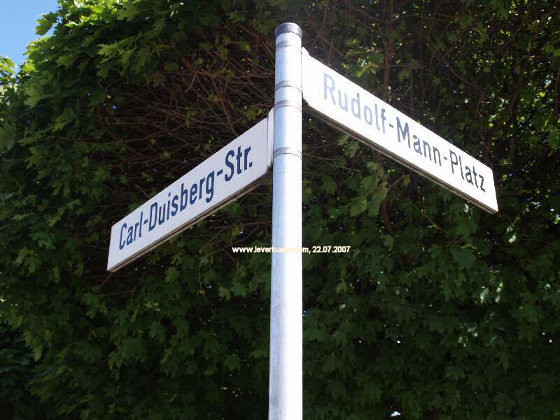 Rudolf-Mann-Platz Zuerst erwähnt 1926 namenslos im Stadtplan verzeichnet. 1938 mit Namen. Art der Straße Bahnhofsvorplatz des ehemaligen Wiesdorfer Bahnhofs. Stadtteil Wiesdorf Postleitzahl 51373 Historische Bedeutung Dr. Rudolf Mann (13.10.1861 - 15.01.1935), 1912-1932 Bayer-Vorstandsmitglied, ab 1933 Aufsichtsratsmitglied der IG Farben Ansichten & Impressionen Bild vergrößern Bild vergrößern Bild vergrößern Bild vergrößern Bild vergrößern
