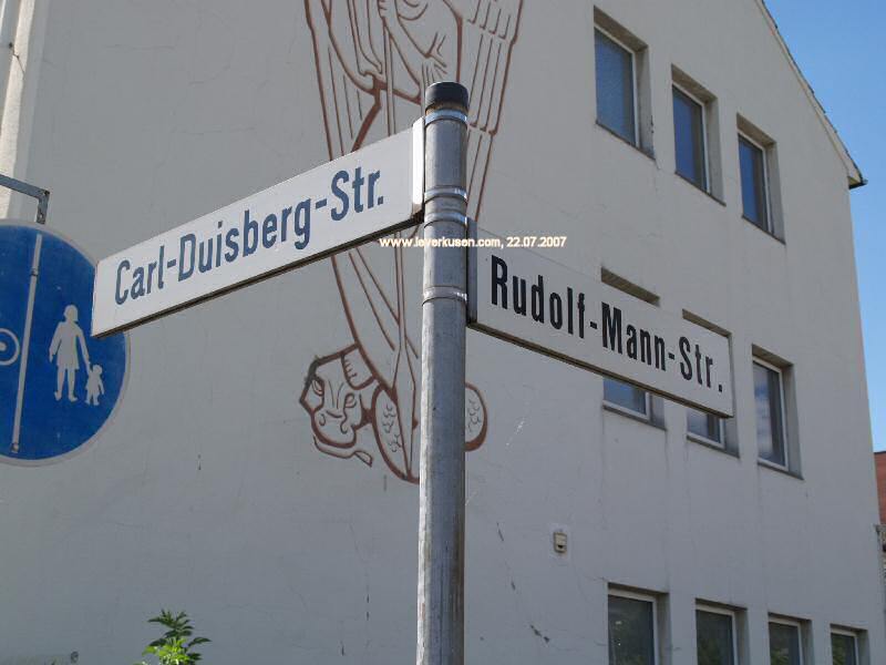 Rudolf-Mann-Str. Zuerst erwähnt 1926 namenslos verzeichnet, 1933 mit Namen im Verwaltungsbericht erwähnt. Art der Straße Der Straße sind keine Häuser zugeordnet. Stadtteil Wiesdorf Postleitzahl 51373 Historische Bedeutung Dr. Rudolf Mann (13.10.1861 - 15.01.1935), 1912-1932 Bayer-Vorstandsmitglied, ab 1933 Aufsichtsratsmitglied der IG Farben Ansichten & Impressionen Bild vergrößern Bild vergrößern